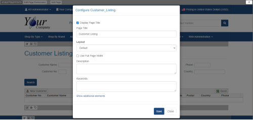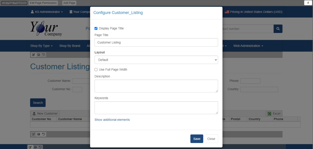 - Navigate to the page you for which you want to edit the properties. For this example, we are editing the page properties of the Customer Listing page.