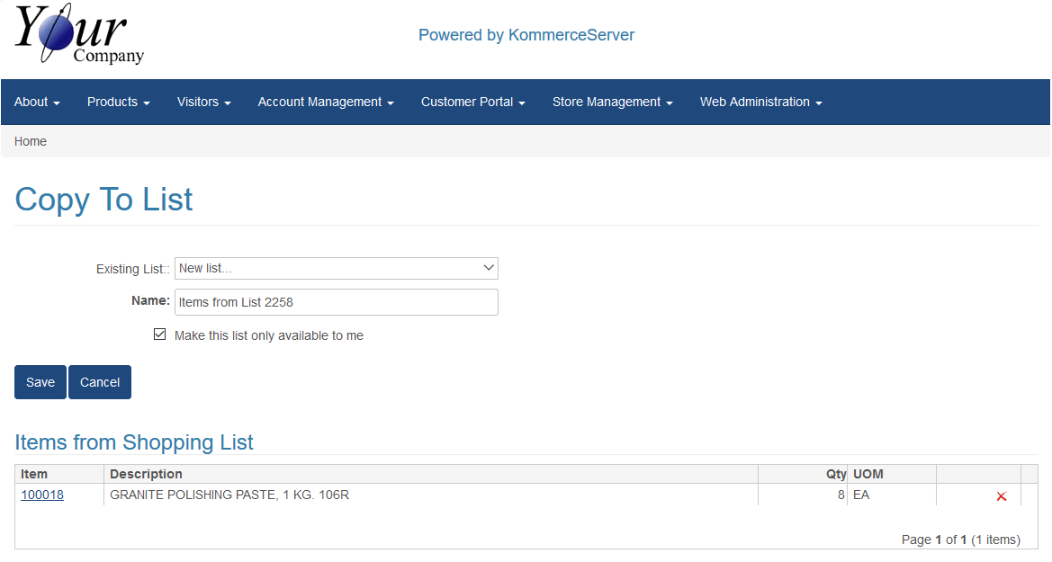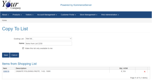 4. If you want to make the list private, select the Make this list only available to me checkbox. If you do not select this checkbox, other members of your store will be able to view it.