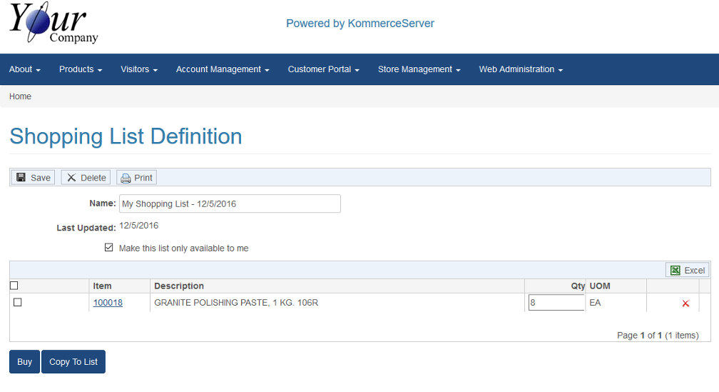 - If you want to copy the items in your list to a new shopping list, click the Copy To List button. This will open the Copy To List page.