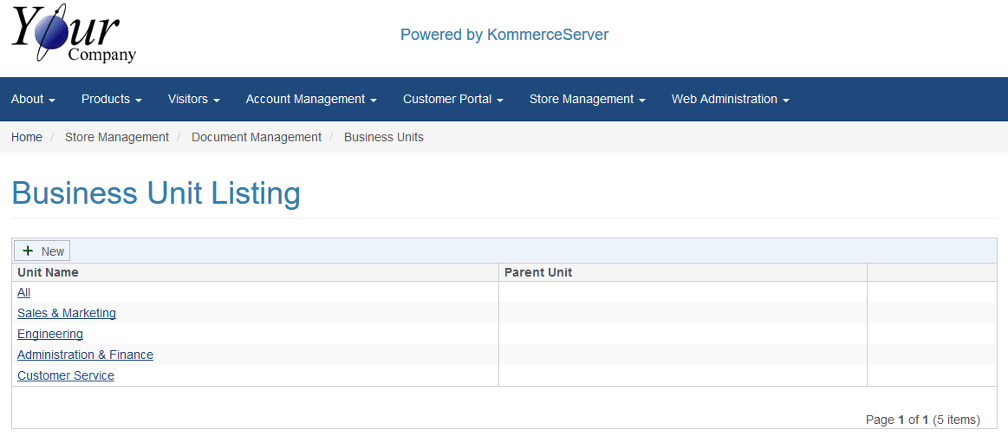 You are here: Store Management > Document Management > Business Unit Listing Page