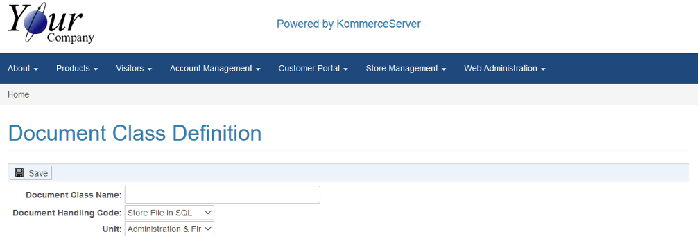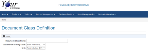 You are here: Store Management > Document Management > Document Class Listing Page > Document Class Definition Page